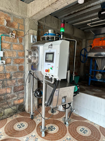 This specific coffee went through a double anaerobic fermentation. Straight after picking, the cherries undergo a 20 hours anaerobic fermentation and then again in smaller batches for 16 hours. After depulping and washing, the coffee is submerged in water and leachate from previous harvests for 18 hours, before being mechanically dried.